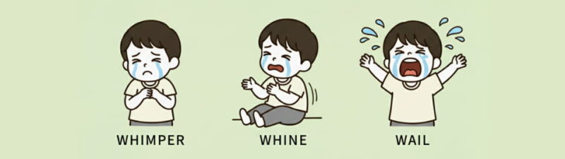 (彼は一日中しょんぼりしてる。) - She moaned that she was tired.