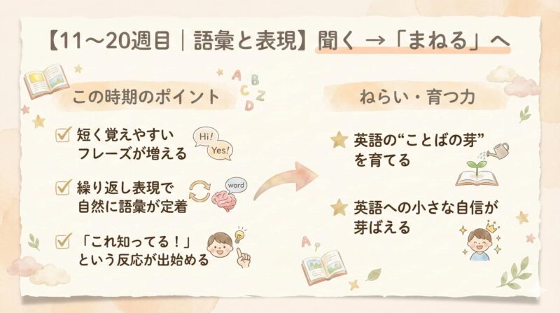 「聞いて終わり」ではなく、自然と一緒に言いたくなる構成が増えてくるのがポイントです。