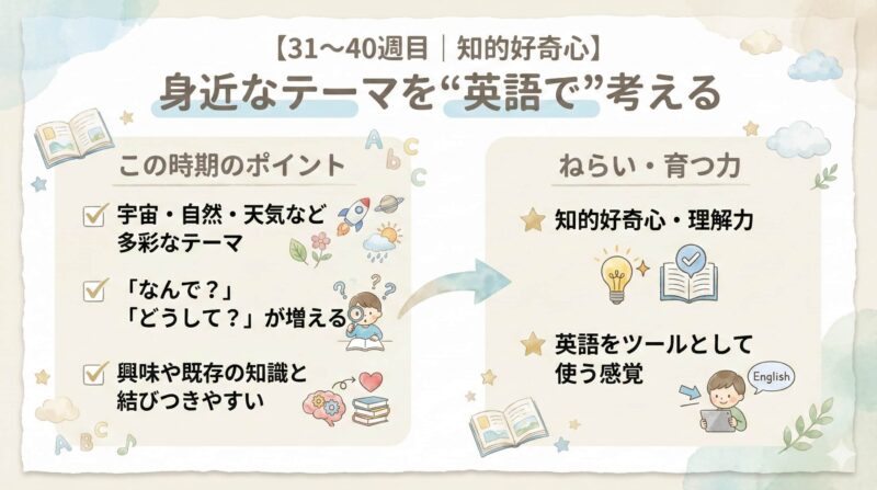 すでに知っていることや、興味のある分野と結びつくことで、英語の内容も無理なく受け取れるようになり、「英語でわかる」という感覚が芽生え始めます。