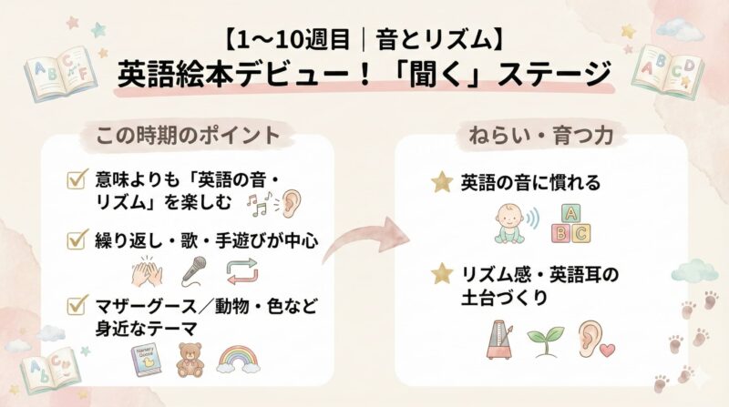 英語を“勉強するもの”ではなく、口に出して楽しむものとして感じられる大切な時期です。